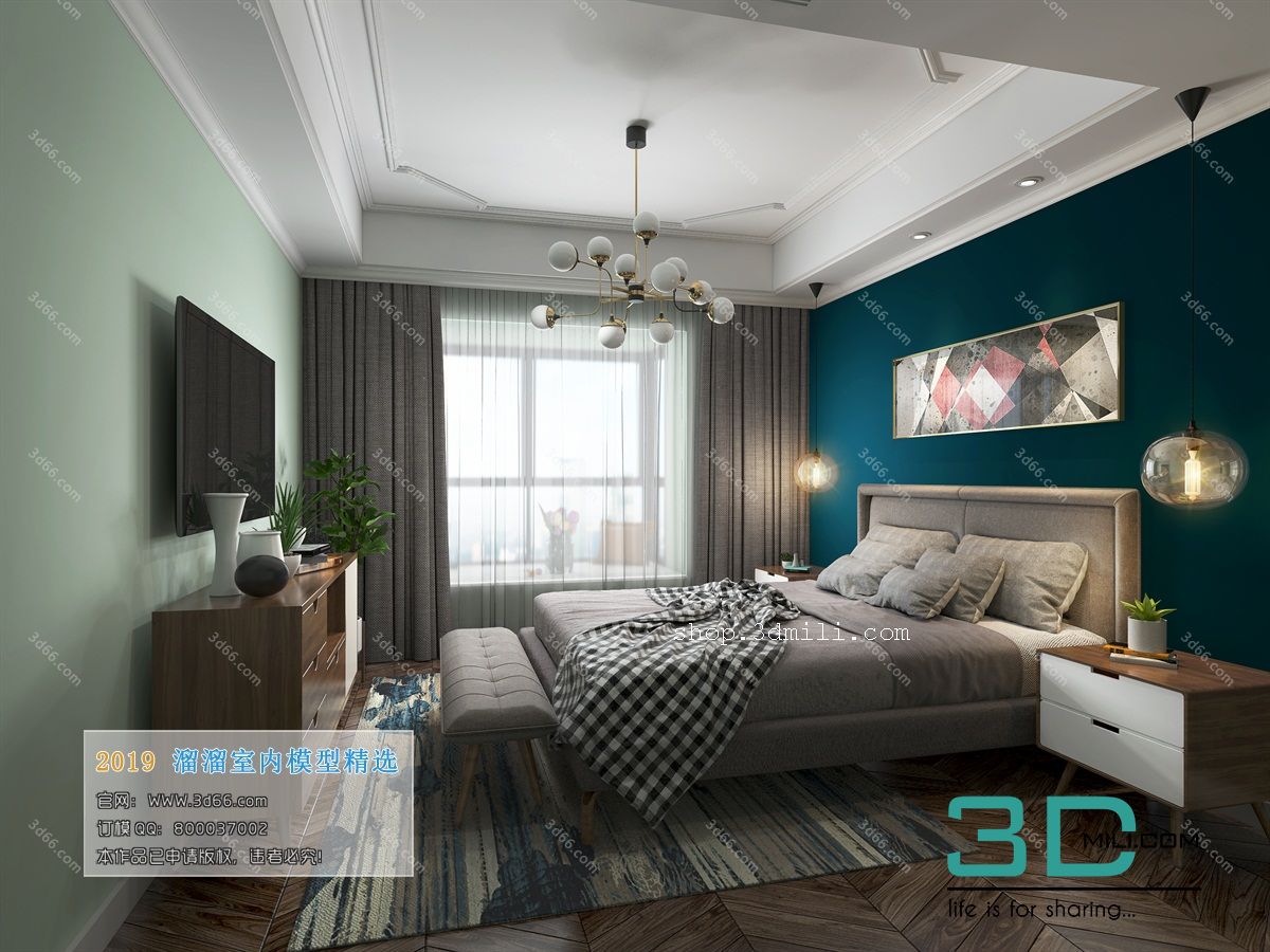 212. Bedroom morden style 3dsmax file – 3d66 Free download