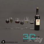 50. Glasses bottle with wine 3D model