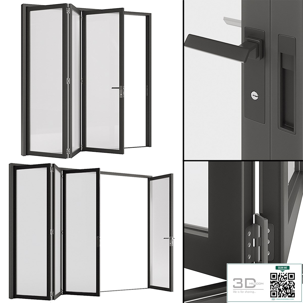 Folding sliding metal doors windows.